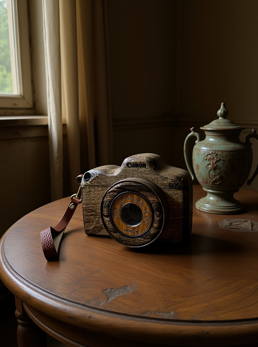 این یک ماکت چوبی دستساز از دوربینهای کلاسیک Canon EOS است که با ظرافت و دقت فراوان ساخته شده است. این اثر هنری، ترکیبی زیبا از نوستالژی عکاسی و گرمای چوب طبیعی است.
